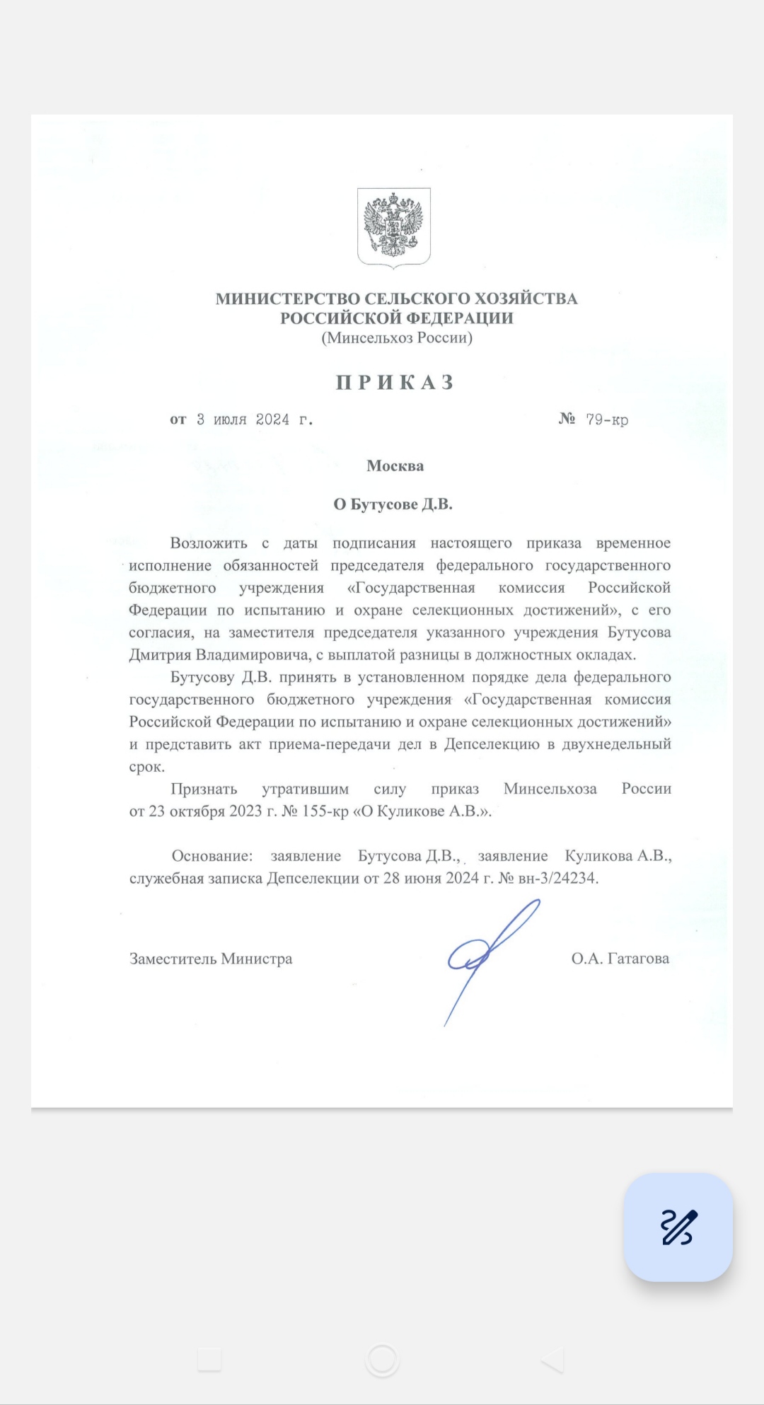 Совсем не факт, что новому руководителю, обладающему опытом работы в сельском хозяйстве, дадут набрать команду с таким же опытом. Лишившийся приставки "врио" Алексей Куликов сначала остался в Госсорткомиссии на позиции первого заместителя председателя. Последнее упоминание о нем на сайте Госсорткомиссии относится к концу июля 2024 г.. Далее и он и должность первого заместителя председателя исчезли из перечня руководителей на сайте Госсорткомиссии при отсутствии на нем каких-либо приказов об организационно-штатных мероприятиях. Ирина Лосева сохранила свой пост начальника отдела правового обеспечения и госзакупок. Это наводит на мысль о том, что экс-прокуроров могли просто спрятать в аппарате от публичного скандала подальше.