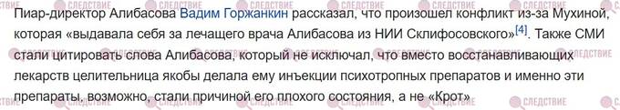 Умному, как говорили древние, уже было бы достаточно. Но, как известно, умные в любом обществе являются меньшинством. Потому поток пациентов госпожи Мухиной не уменьшается, несмотря на многочисленные скандалы вокруг ее имени. Среди самых известных – отравление Бари Алибасова средством для прочистки канализации «Крот». Алибасов утверждал, что лечился у Мухиной и вследствие этого «лечения» и выпил «Крот». Мухина, естественно, все отрицала. По итогам стороны помирились, но скандал был громким.
