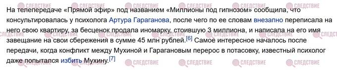 Еще в одном скандале, о которым стоит упомянуть, пострадала уже сама Марият Мухина – ее «обул» на 50 миллионов рублей еще один достойный ученик Чумака и Кашпировского, некий «экстрасенс» Артур Гараганов. По крайней мере, так утверждала сама Мухина.
