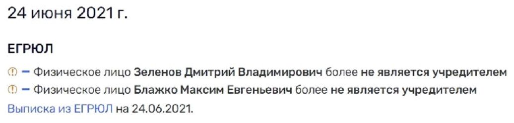 Вызывает вопросы и тот факт, что сейчас в «Руспрофайле» не отображено, кто же является собственником компании. А Максим Блажко вместе с партнером Дмитрием Зеленовым перестал числиться в учредителях лишь 24 июня 2021 года. Получается, ВТБ понадобилось целых 12 лет, чтобы вычеркнуть их из реестра учредителей?