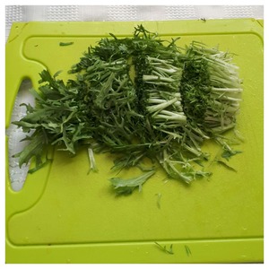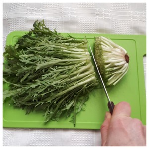 У салата фризе (одуванчик) отрезаем белую часть.