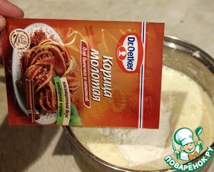 Взбить яйца с сахаром до бела, вмешать туда муку и корицу ТМ «Dr. Oetker». Вылить на силиконовый коврик и выпекать до готовности. Остудить.
